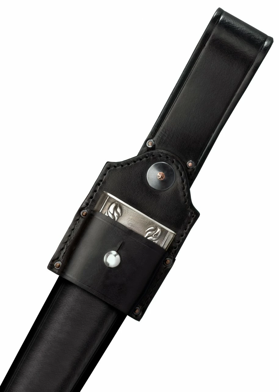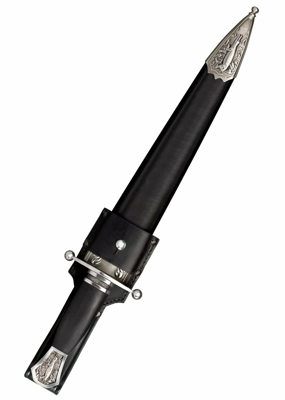 Cold Steels® Version hat eine kräftige zweischneidige Speerspitze mit einem Griff aus malaysischem Salholz und einem ausgefallenen Knauf mit Alligatormotiv. Die Scheide ist ebenfalls aufwendig gestaltet. Sie ist fein gearbeitet und dekorativ verziert, um den Griff zu ergänzen.