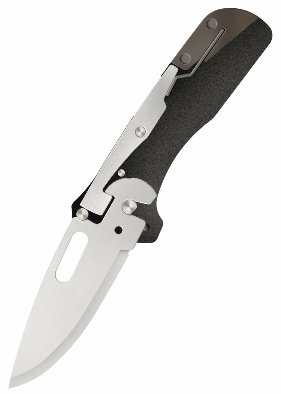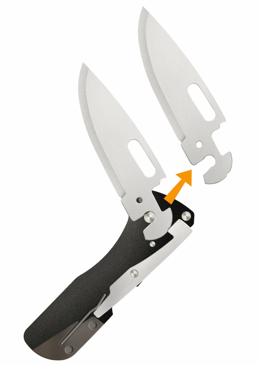 Cold Steels® Click-N-Cut Taschenmesser hingegen hat 1,5 mm breite Wechselklingen und verfügt zudem auch noch über einen leistungsstarken Sperrmechanismus.