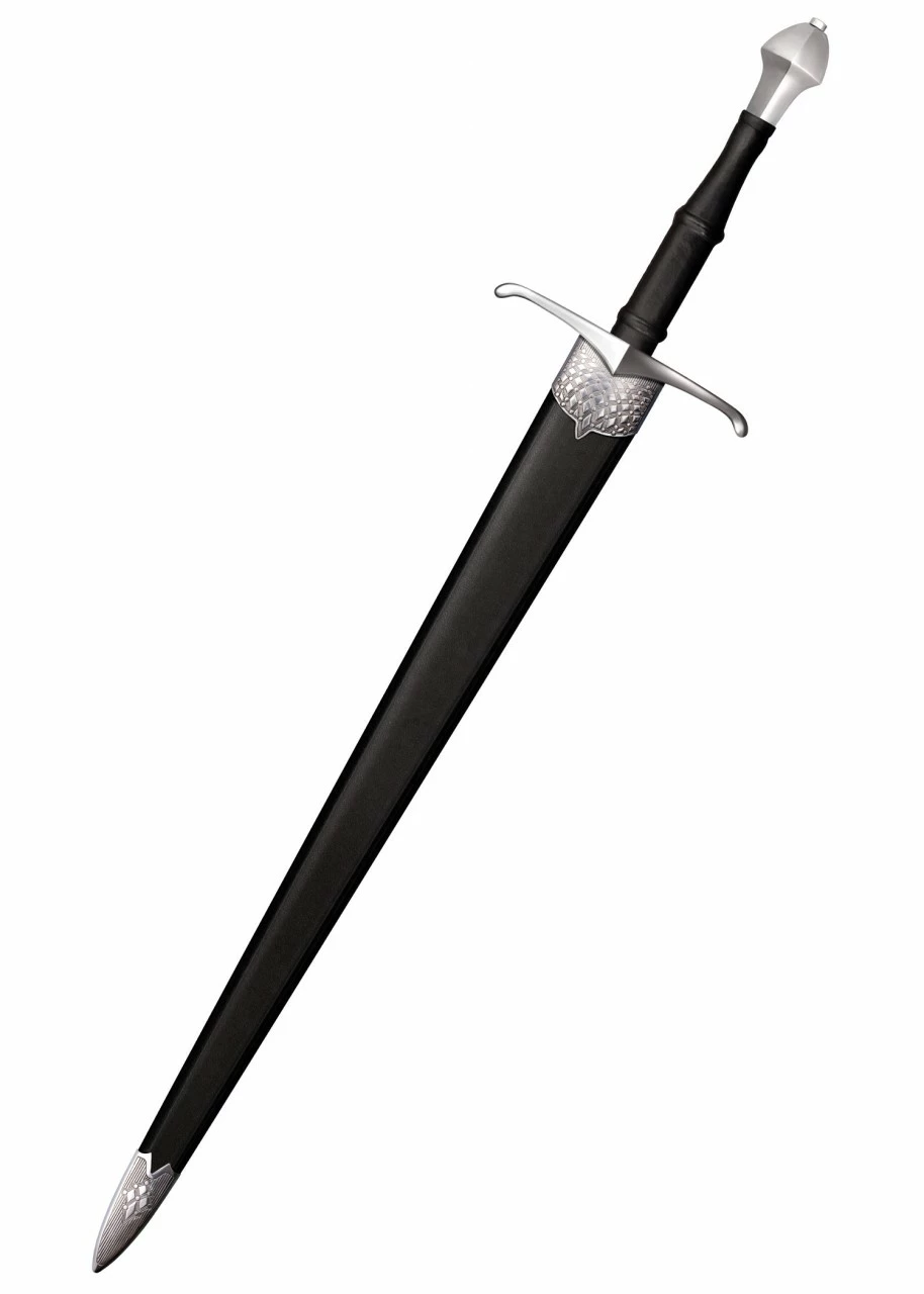 Cold Steels® Competition Cutting Sword basiert grob auf dem Schwert von Arbedo und ist für Schneidwettbewerbe mit Seilen, Versandrollen, Tatami-Matten und ähnlichen ‚weichen‘ Materialien konzipiert. Die dünne, breite zweischneidige Klinge aus 1055er Karbonstahl wurde auf Federhärte angelassen, vollgeschärft und poliert.
