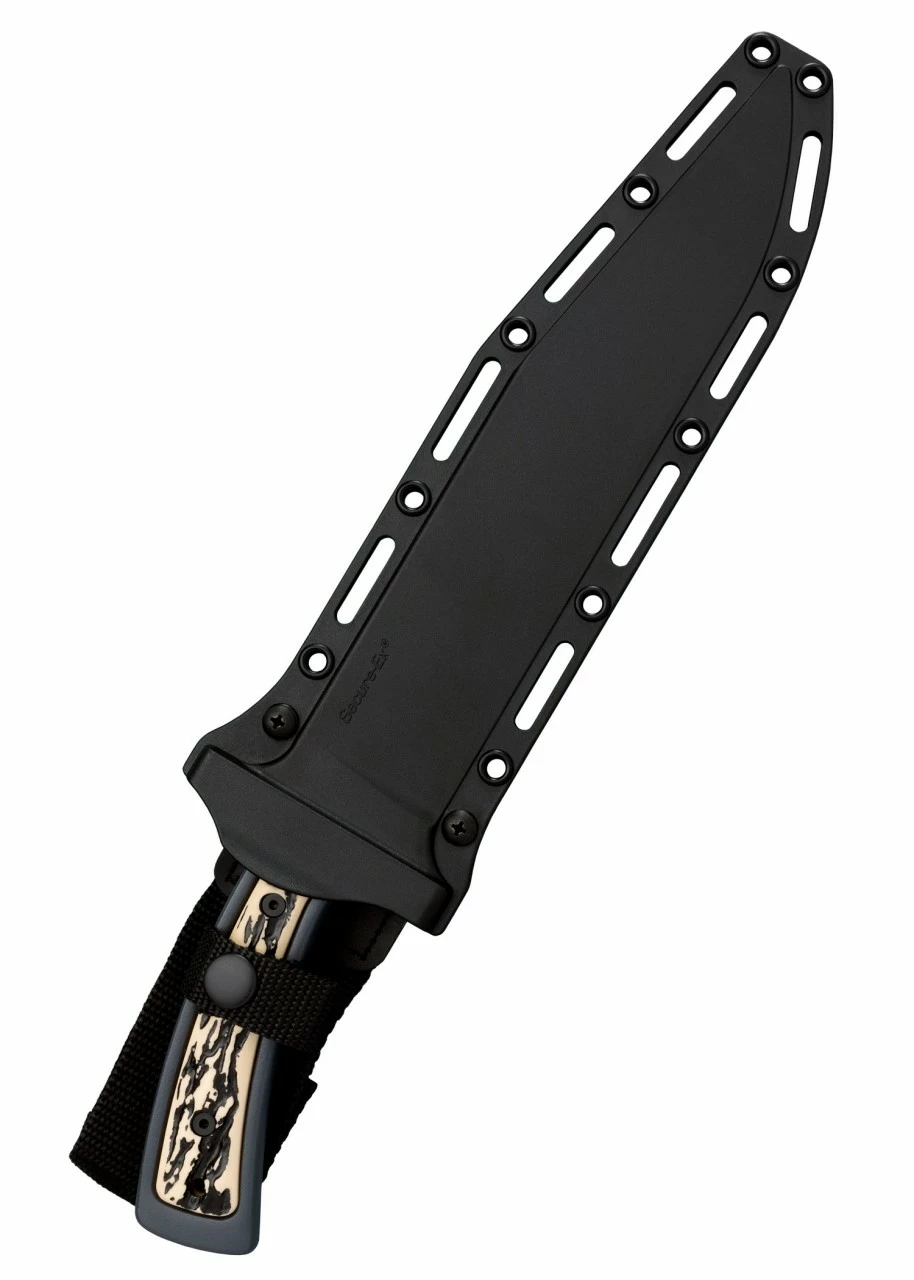 Diese Ergänzung zu Cold Steels® Drop Forged-Messerserie hat eine Gesamtlänge von 35,8 cm und verfügt über eine 24,1 cm lange Klinge. Das Messer teilt viele Eigenschaften mit den anderen Modellen der Serie, einschließlich der robusten, einteiligen Konstruktion aus einem einzigen Stück Stahl, die für eine verblüffende Stabilität sorgt. Allerdings ist es im Unterschied zu den anderen Drop Forged-Messern mit markanten Griffeinlagen aus Hirschhornimitat ausgestattet.