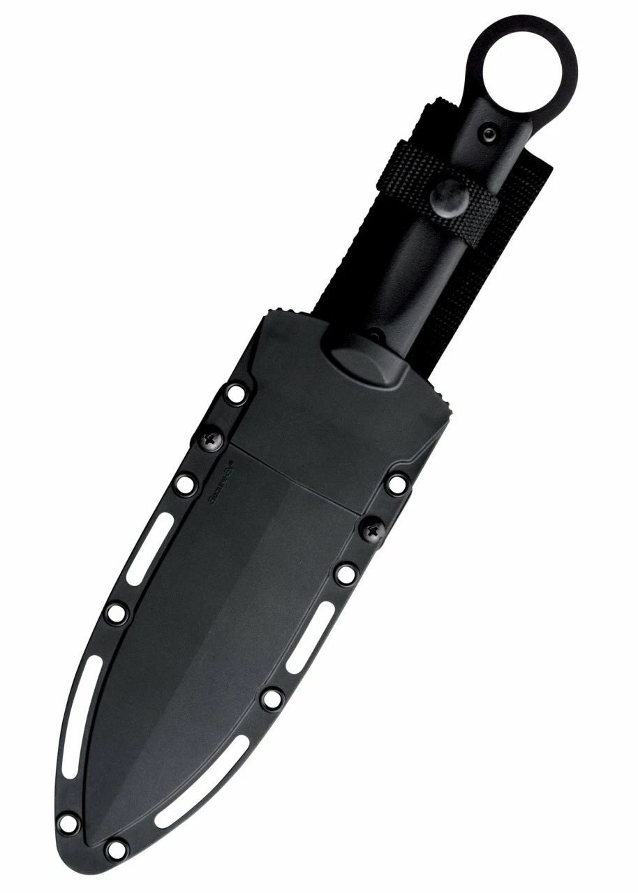 Der Knaufring von Cold Steels® Shanghai Shadow® macht dieses großartige, sehr beliebte Messer ungemein vielseitig in der Handhabung. Wenn der Zeigefinger durch den Ring gesteckt wird, liegt das Messer absolut sicher in der Hand. Eine Drehung um den Zeigefinger genügt, um einen schnellen Griffwechsel zu erzielen. Und wenn Du das Messer nur am Ring hältst, verlängert er außerdem die Reichweite Deines Arms um bis zu 10 cm.