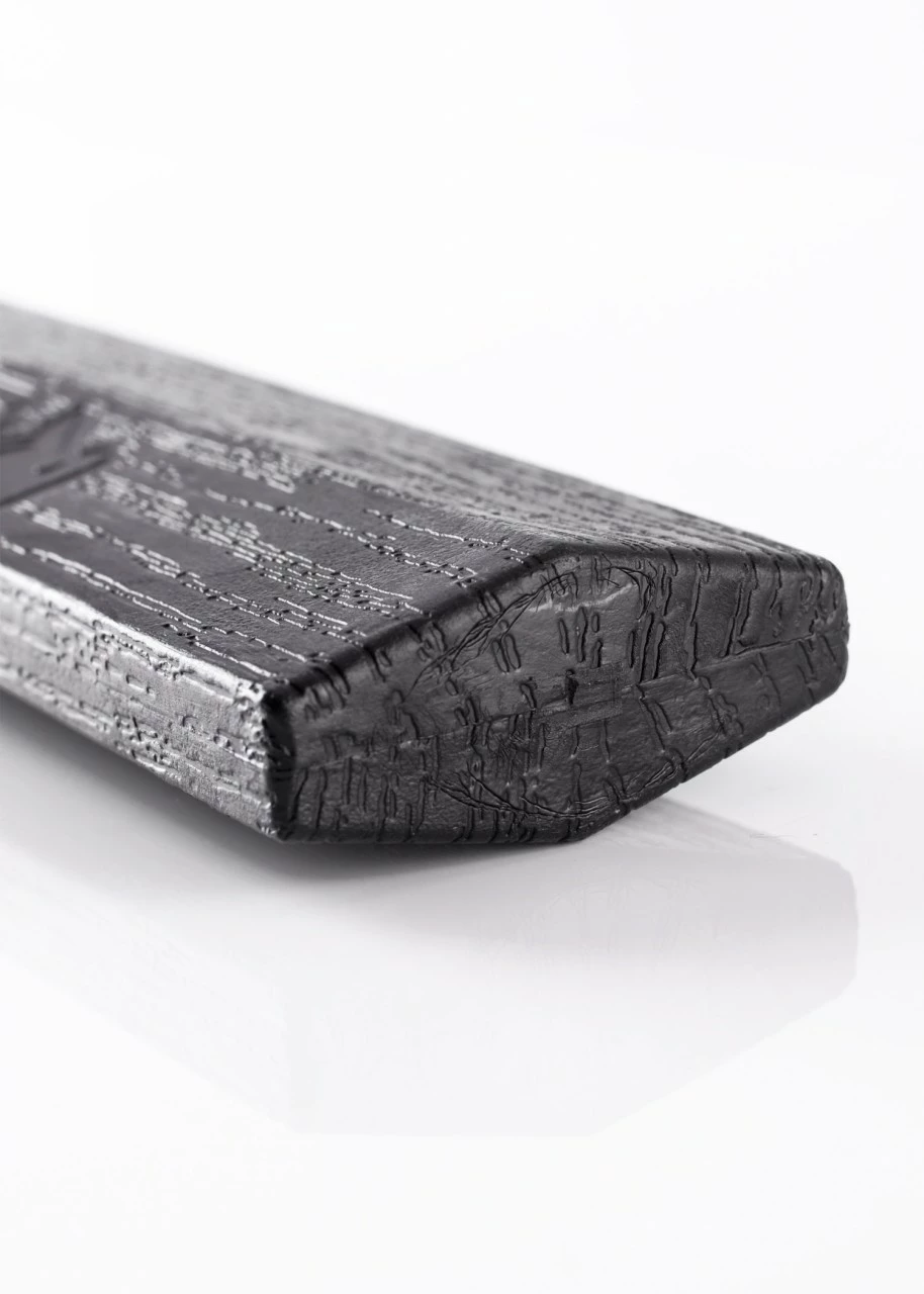 Es weist eine stilvolle Holzoptik auf und ist mit Kanji-Schriftzeichen verziert, die die fünf wichtigsten Gebote für eine optimale Schneidetechnik mit dem Schwert darstellen – circular motion (Kreisbewegung), blage angle (Klingenwinkel), cutting trajectory („Flugbahn“ der Klinge), distancing (Abstand zum Gegner) und wringing the tea cloth (Wringen).