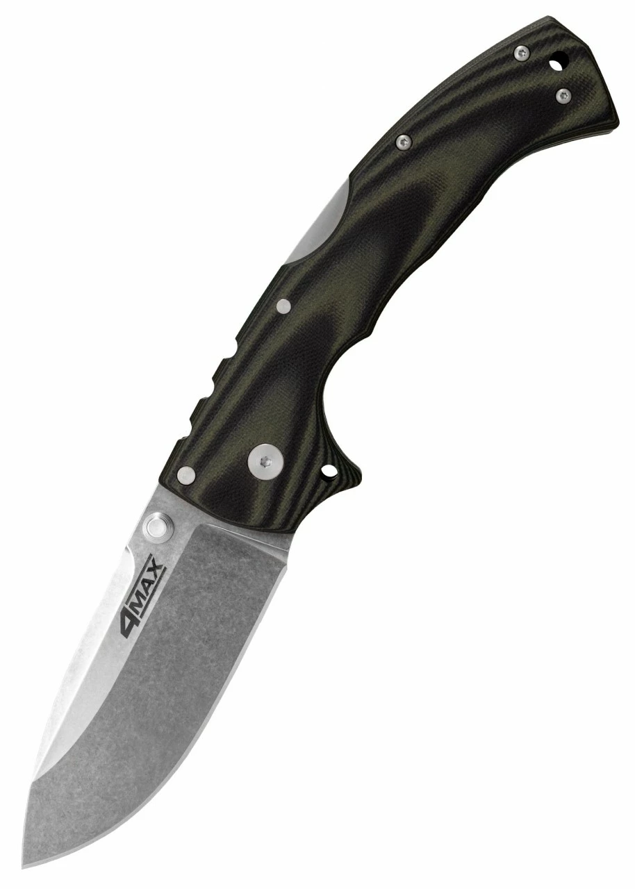 Dieses Messer ist mit dem bahnbrechenden Tri-Ad®-Verriegelungsmechanismus ausgestattet und somit womöglich das stabilste seriengefertigte Taschenmesser, das Cold Steel® jemals produziert hat! All den berühmt-berüchtigten, äußerst strapaziösen Härte- und Belastungstests von Cold Steel® hielt das 4-Max durch die Bank stand und konnte sogar ein frei hängendes Gewicht von knapp über 360 kg (800 lbs) problemlos aushalten – und dies ohne Schäden!