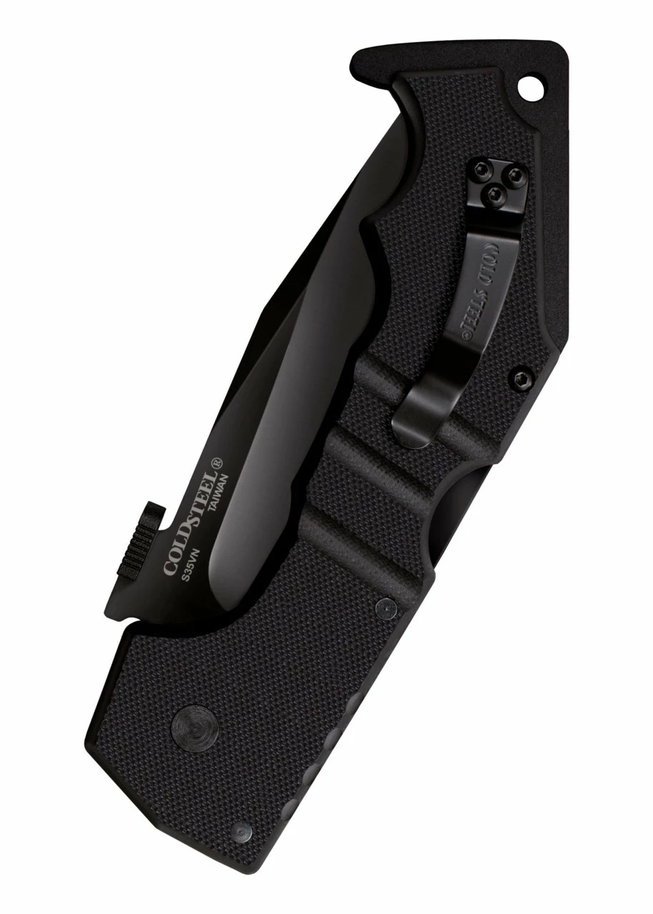 Zu guter Letzt sorgt Cold Steels® patentierte Daumenscheibe für einen schnellen, beidhändigen Zugriff: Sie ermöglicht das gleichzeitige Herausziehen und Öffnen des Messers am Taschensaum.