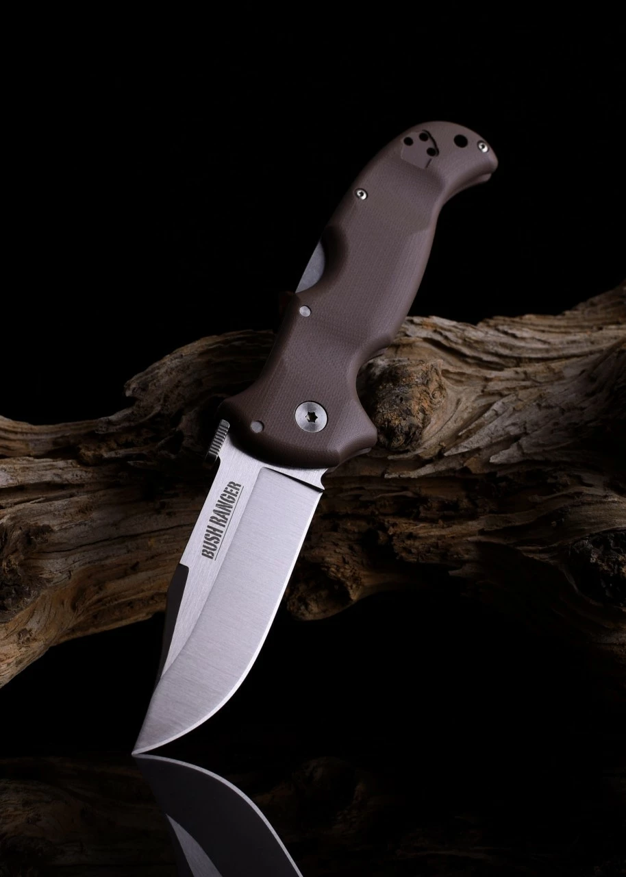 Langjährige Cold Steel®-Kunden erinnern sich vielleicht noch an das originale Bush Ranger, ein feststehendes, von Lynn C. Thompson entworfenes Feldmesser aus früheren Jahren. Zu seinen besonderen Merkmalen gehörte ein äußerst komfortabler Griff. Mike Wallace hat dieses Messer als Inspiration genommen und ein klappbares Feldmesser kreiert, das großartig in der Hand liegt und einen längeren Gebrauch ohne Ermüdungserscheinungen zulässt.
