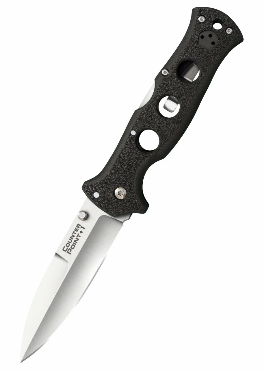 Cold Steel® hat viele Jahre damit verbracht, die besten Eigenschaften von Luxus-Stiefelmessern zu untersuchen, um sie effizient in ein Klappmesser zu integrieren. Das Ergebnis dieser Arbeit ist das Counter Point, das in drei unterschiedlichen Klingengrößen (7,6 cm, 10,2 cm und 15,2 cm) erhältlich ist. Die stilettähnlichen Spear-Point Klingen haben eine ausgeprägte falsche Schneide (sog. false edge) und sind satiniert. Somit sind sie nicht nur wunderschön, sondern auch unfassbar leistungsfähig!