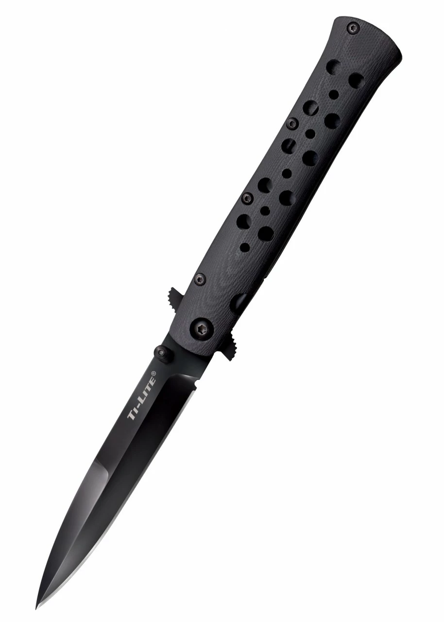 Für maximale Festigkeit und Sicherheit hat Cold Steel® die Ti-Lites® mit Liner-Locks (Seitenfeder-Verriegelung) aus Edelstahl ausgerüstet, die bei hauseigenen Tests ein Gewicht von über 66 kg (145 lbs.) aushalten konnten.