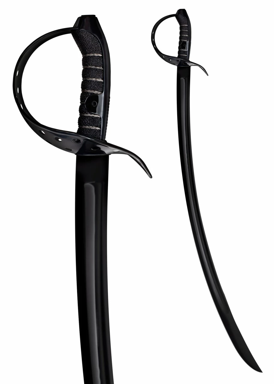 Das Stichblatt des Thompson Säbels ist eine abgewandelte Version des Stichblattes des Säbels von 1904 und bietet hervorragenden Schutz für die Hand. Der beträchtliche Griff ist mit Rochenhaut umwickelt und bietet sogar genug Platz für große, moderne Fechthandschuhe. Im Lieferumfang enthalten ist eine strapazierfähige Scheide aus kräftigem Leder und Stahl, mit Gürtelschlaufe zum bequemen Tragen.