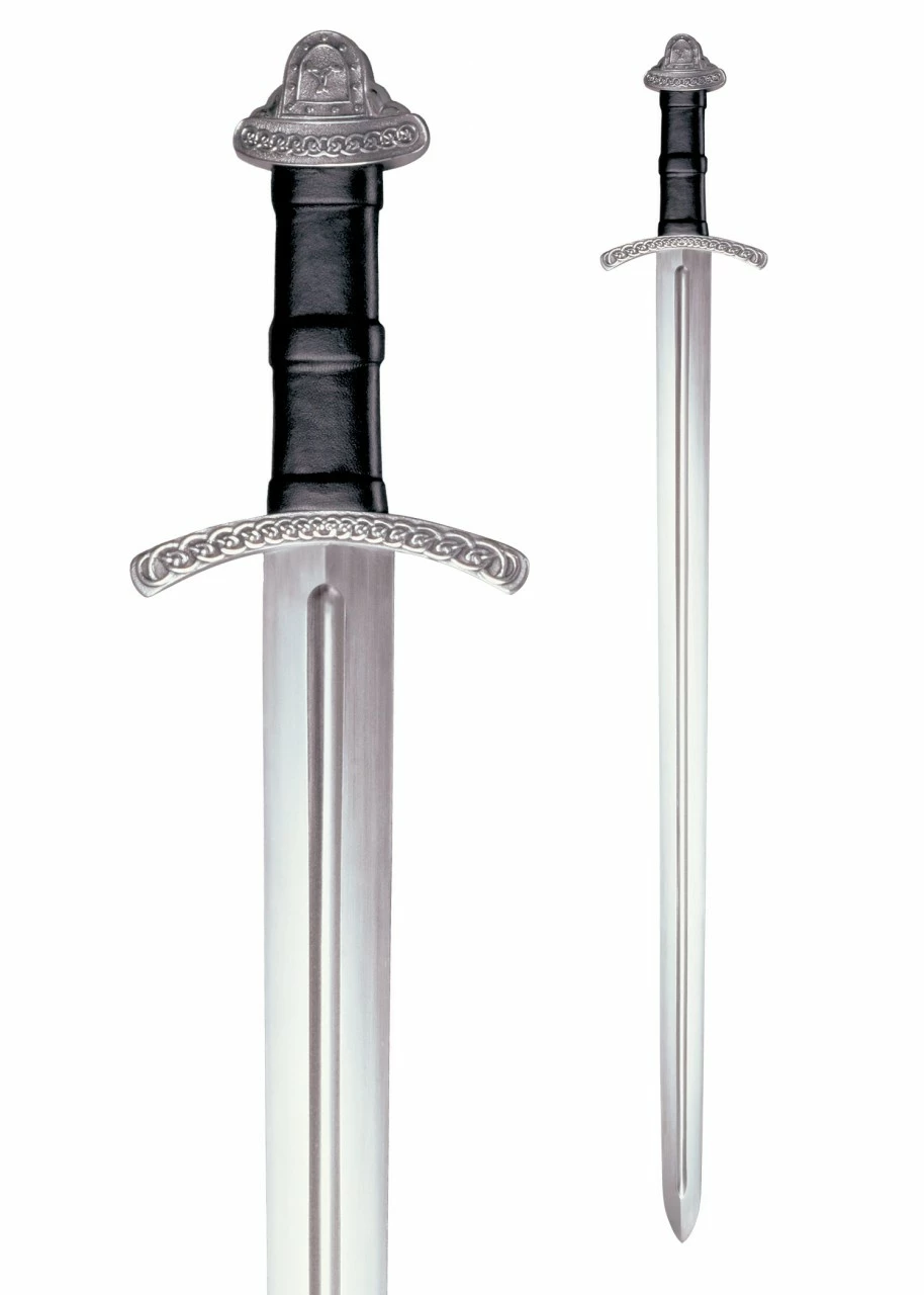 Das historische Wikingerschwert des 9. und 10. Jahrhunderts besaß eine lange, breite Klinge mit einer breiten, mittigen Hohlkehle und zwei scharfen Schneiden. Da diese Klinge gemäß der damals bevorzugten Kampftechnik vielmehr zum Hauen und Hacken konzipiert war, hatte sie einen eher abgerundeten Ort, der allerdings noch spitz genug war, um auch gut stechen zu können. Eine einfache, nach vorne gebogene Parierstange wurde oft mit einem handlichen Griff aus lederbezogenem Holz (manchmal aus Knochen oder sogar aus Messing) und einem massiven Knauf mit fünf Wülsten kombiniert, um die lange Klinge auszubalancieren.