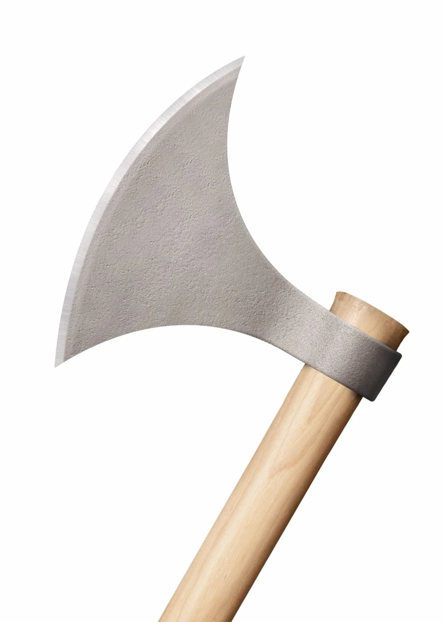 Sie kann so unermüdlich schneiden, hacken und stechen, dass jeder Wikinger, der dieses Namens würdig ist, Dich darum beneiden würde. Das Axtblatt ist gesenkgeschmiedet und verfügt über eine breite, bogenförmige Schneide, die mit zwei scharfen Hörnern oder Spitzen abschließt. Somit kann die Axt sowohl zum Stechen und Parieren benutzt werden, als auch dazu dienen, den Schild oder die Gliedmaßen des Gegners einzuhaken.